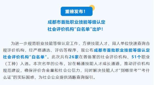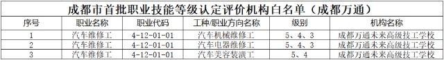 在成都市此次严格遴选评估的 26 家备案社会评价机构、51 个入选职业(工种)中,我校的汽车机械维修工、汽车电器维修工、汽车美容装潢工三大汽车核心工种成功上榜!