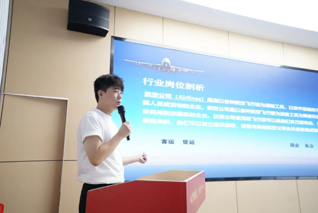讲座伊始,四川朝东航空负责人张总监从行业发展现状入手,详细解析了城市轨道航空行业的就业前景和人才需求趋势。行业对高素质、专业化的服务管理人才需求持续增长,张总监表示:“我们与成都万通的校企合作,就是要让学生们在校期间就能了解行业标准,掌握岗位技能,实现从校园到职场的无缝衔接。”