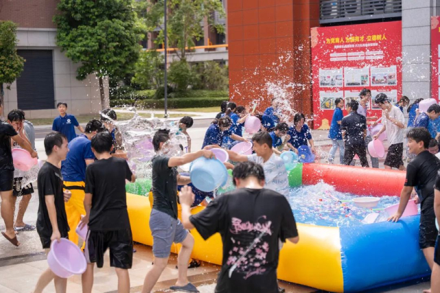 活动现场,学校操场变身“水上乐园”,师生们手持水枪、水盆等工具,在欢快的音乐中互相泼水祝福。清凉的水花洒向天空,传递着师生间的真挚情谊,也洗去了夏日的炎热。现场还设置了趣味水球大战、团队接力赛等互动游戏,同学们在游戏中团结协作,展现了青春风采。