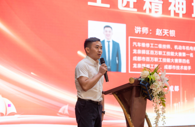 最后,优秀教师代表赵老师结合自身丰富的教学和实践经验,生动讲述了技术技能如何改变个人命运、服务社会发展的真实故事。他分享了对工匠精神的理解,并呼吁同学们要沉下心来,专注技能学习,耐得住寂寞,经得起磨练,将追求卓越、一丝不苟的工匠精神融入每一次实训、每一次操作中,努力成长为新时代的“能工巧匠”。