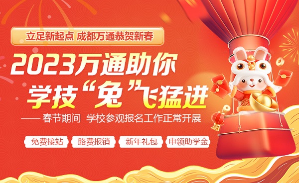辞旧岁,迎新春。值此新春佳节到来之际,成都万通未来高级技工学校全体老师给您拜年啦!新年伊始是春节,万象更新又一年。成都万通向一直支持着我们的家长、学子及社会各界人士致以诚挚的新年祝贺,祝大家新年快乐,学技“兔”飞猛进,新的一年大展宏“兔”!