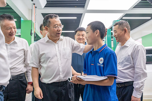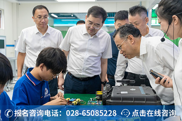 成都万通未来高级技工学校作为天府技能小镇核心院校成员之一,在校领导的陪同下,普布顿珠常委、副省长一行先后参观了成都万通智能网联实训室、新能源汽车实训室、高端车检测与维修实训室,仔细观看学生实训课堂和教学环境,详细了解学校的专业建设、师资力量、学生就业等情况。普布顿珠常委、副省长高度重视、亲切关怀学生成长成才,视察中,普布顿珠常委、副省长与在校学生频频互动,倾听他们心声,指引他们成长,鼓励他们要心无旁骛,学成技艺。“明德精技·知行合一”,成都万通始终注重学生在实践中学真知、悟真谛,加强磨练、增长本领。在整个视察过程中,普布顿珠常委、副省长一行领导对于成都万通专业的人才培养模式和学生学习成果给予了高度评价。