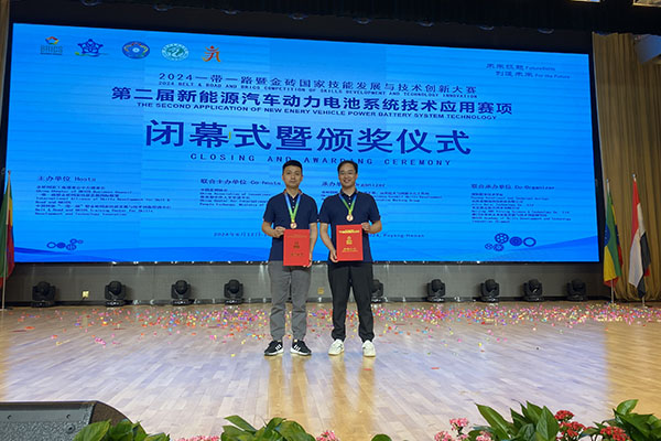 6月12日至15日,2024一带一路暨金砖国家技能发展与技术创新大赛之新能源汽车动力电池系统技术应用赛项在河南濮阳举行。来自全国各省、自治区、直辖市的67支学生代表队和52支教师代表队共计238名选手同台竞技。经过两天的激烈角逐,成都万通由贾开军、孙洪均等四位组成的教师队伍荣获三等奖及优胜奖。